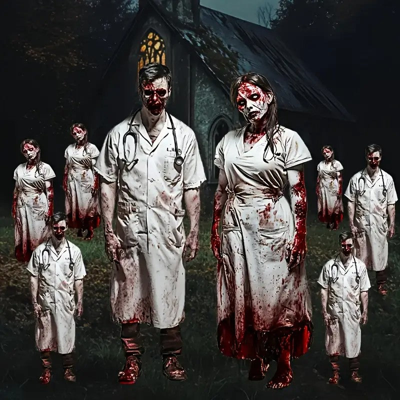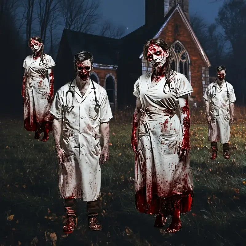 2pcs Large Halloween Doctor Nurse Shaped Courtyard Plastic Signs,