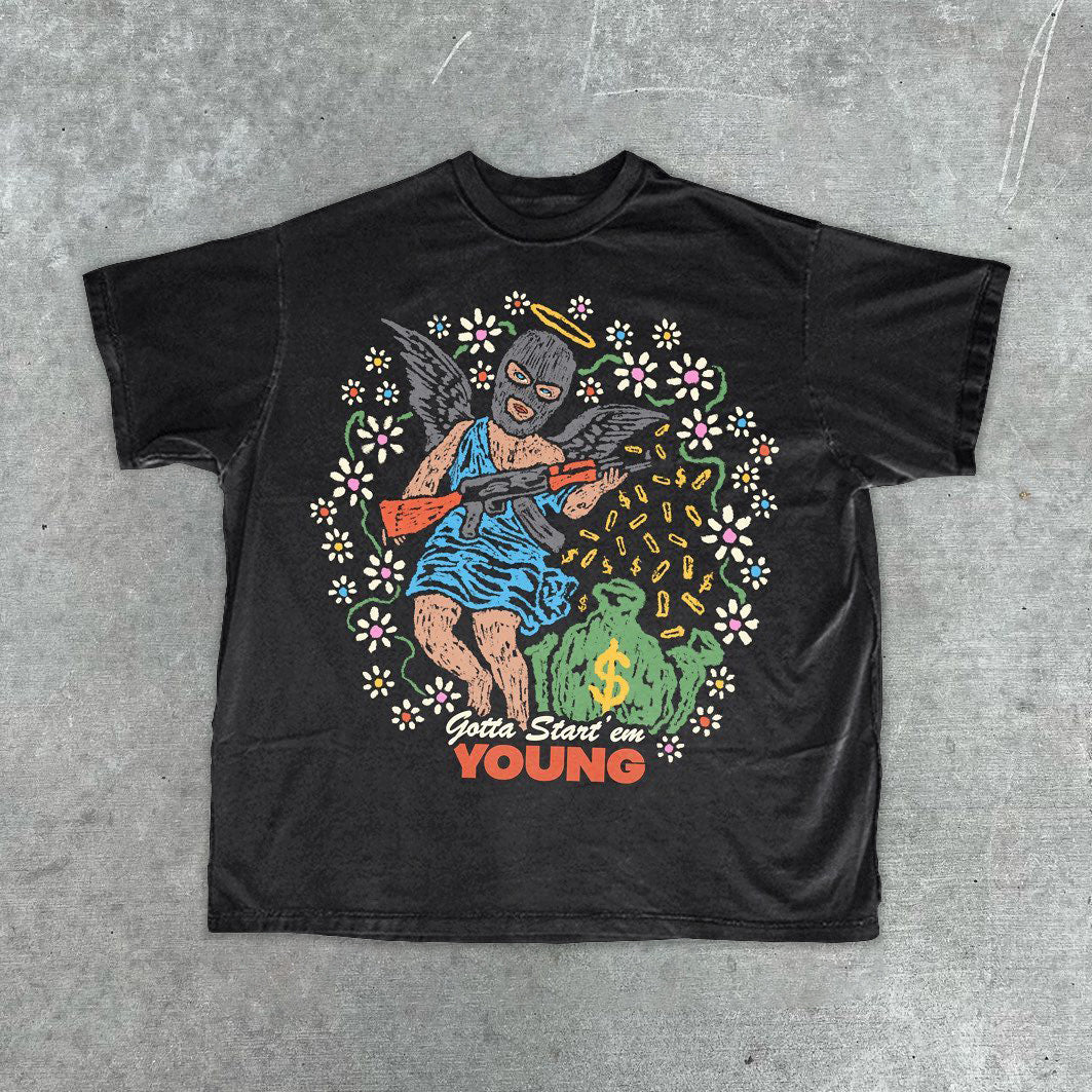 Angel Casual Street Style Retro Fashion Short Sleeve T-Shirt