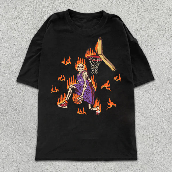 Basketball Skull Flame Print Short Sleeve T-Shirt