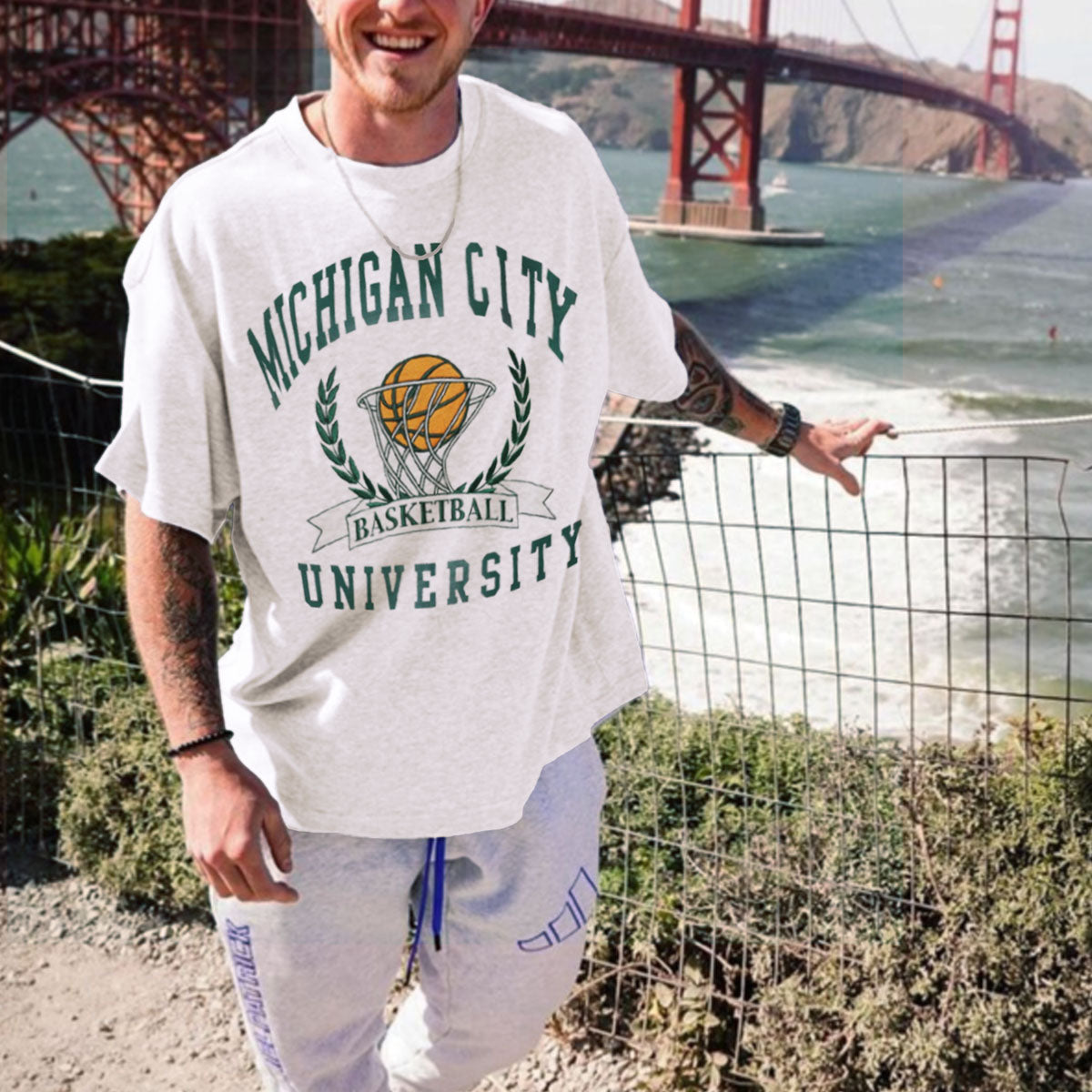 Fashion Preppy Loose Crew Neck Printed Casual T-Shirt