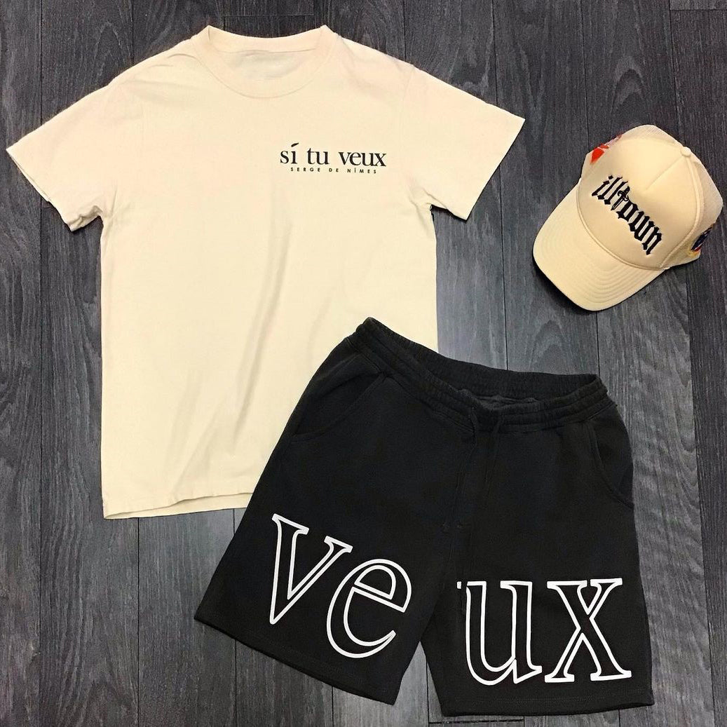 Letter Print T-Shirt Drawstring Shorts Two-Piece Set
