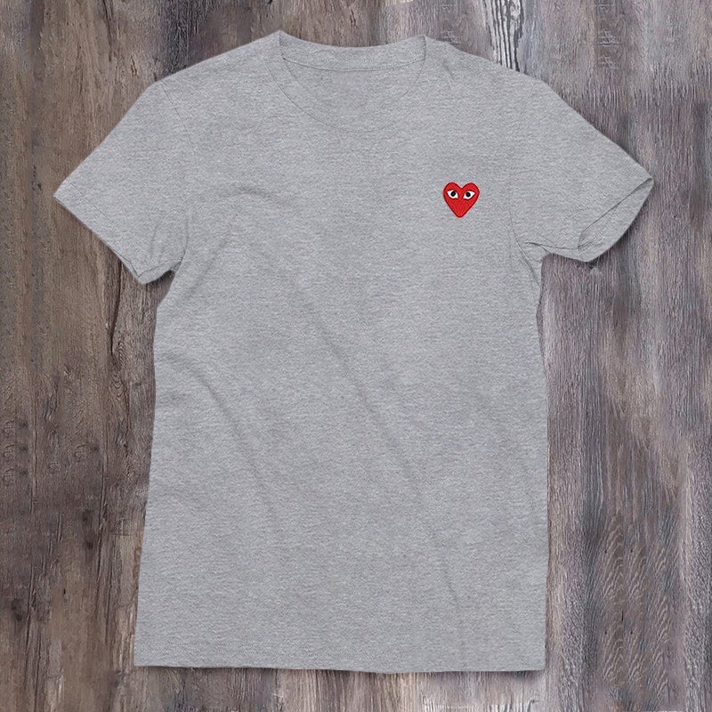 Love T-shirt for men and women couples with embroidery small red heart short sleeves