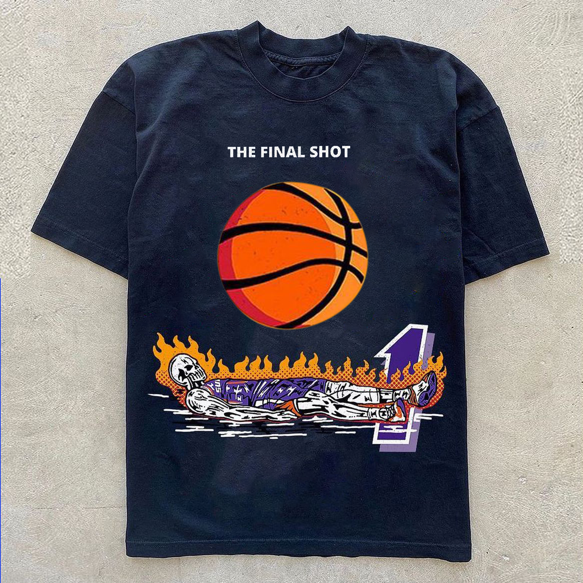 Personalized street style basketball skull print short-sleeved T-shirt men