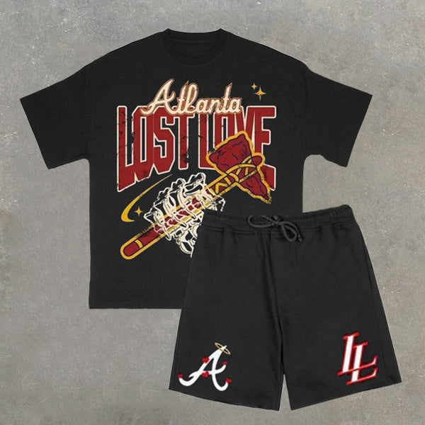 Print T-Shirt Drawstring Shorts Two-Piece Set