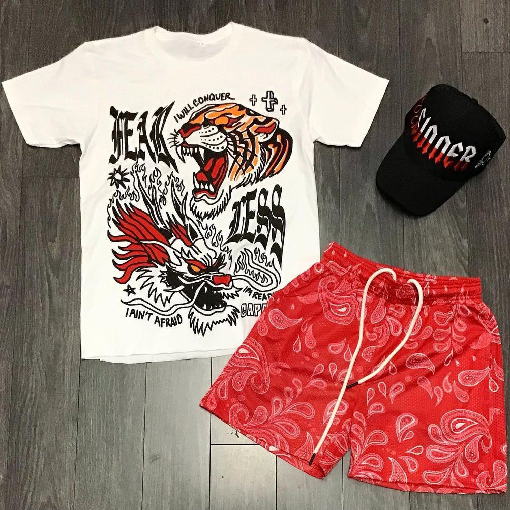 Print T-Shirt Drawstring Shorts Two-Piece Set